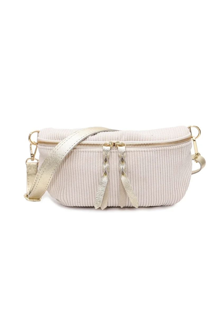 Gürteltasche aus Samtstoff Ecru